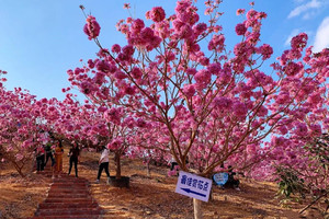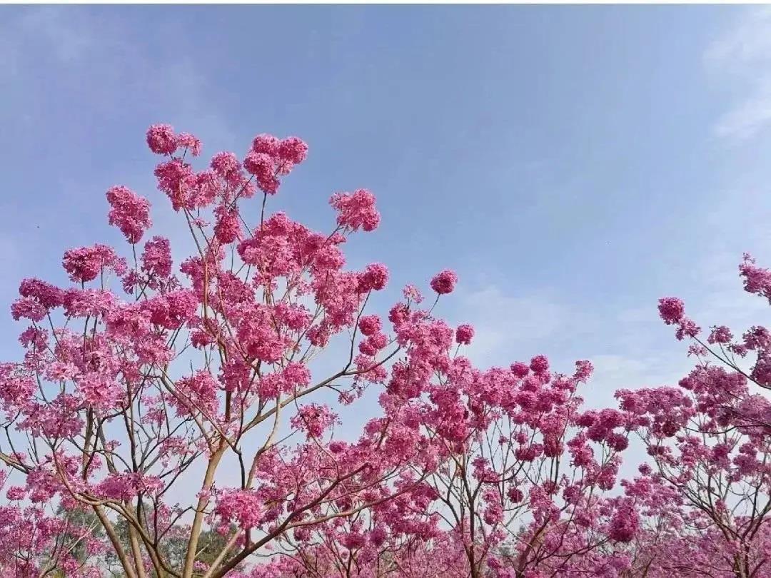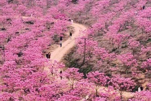 13:45-17:00 游览拍摄【紫花风铃木】,34万平方米的紫花风铃,满树铃铛、姹紫千红的紫花风铃盛开,构成一幅美如童话的仙境,会让你深深的感到震撼!摄影家的天堂!