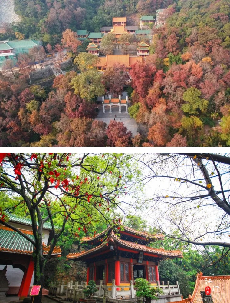 在近千级台阶之上,还有始建于唐朝的广东四大名刹之一玉台寺,这里的红枫最是醉人,传说当年圭峰禅师宗密也曾在这里坐禅。