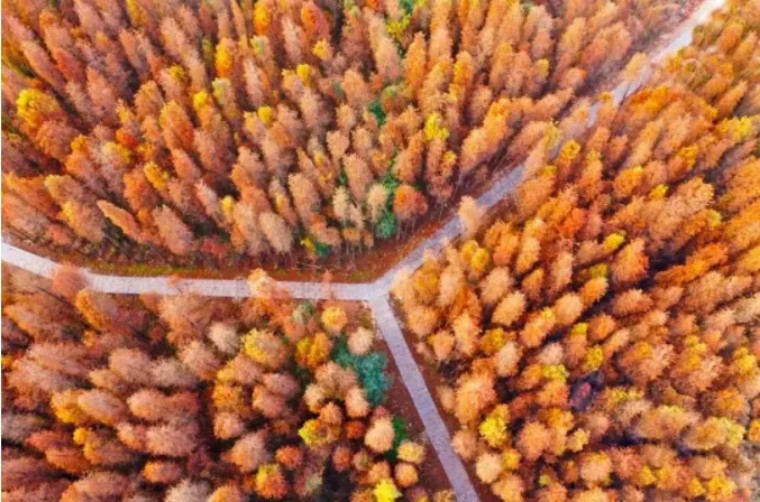 赏新会“小九寨”的多彩冬日,落羽杉亦金亦红,交相辉映,让人流连忘返