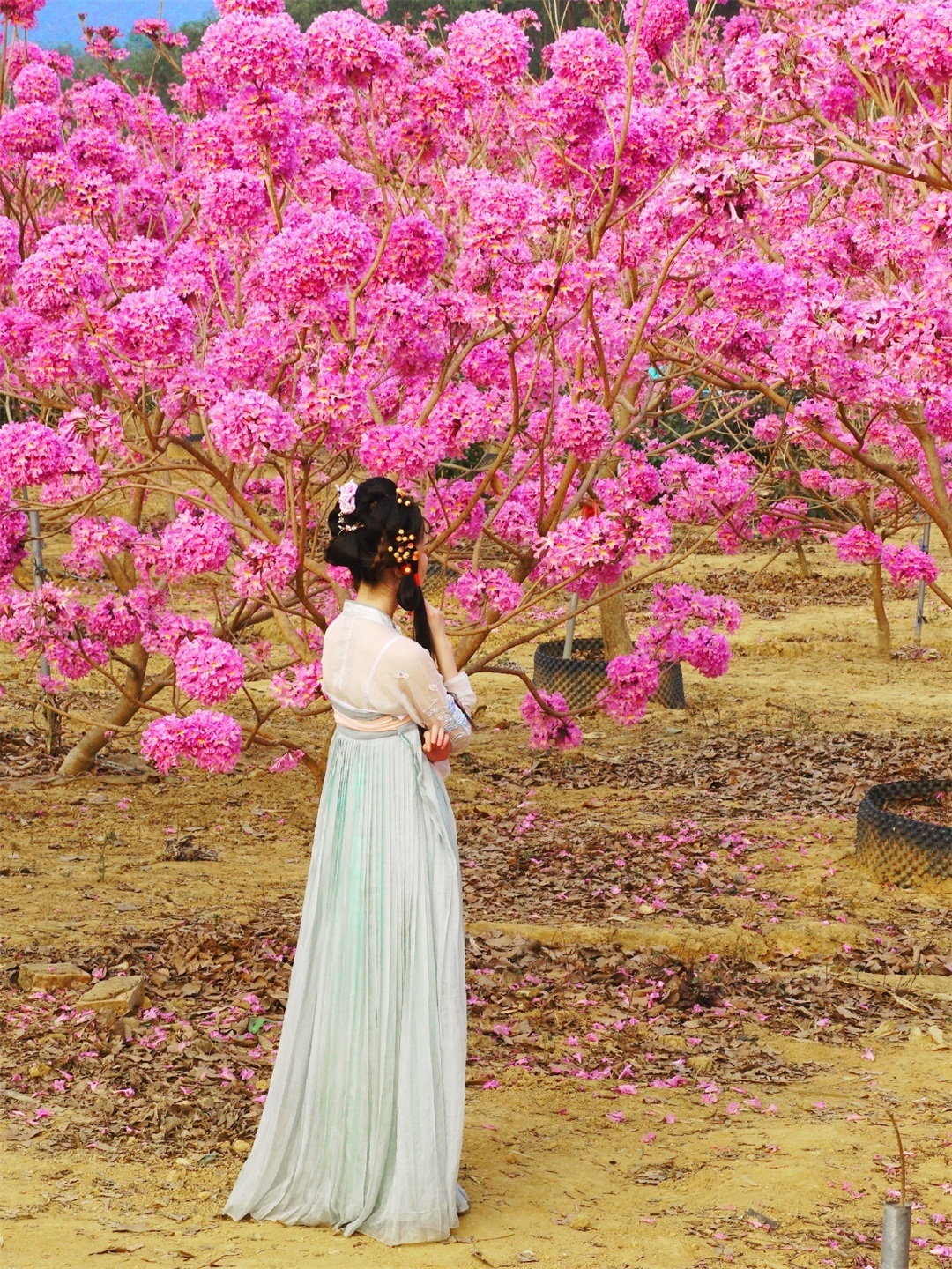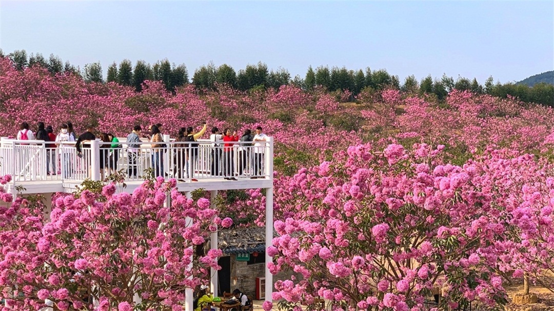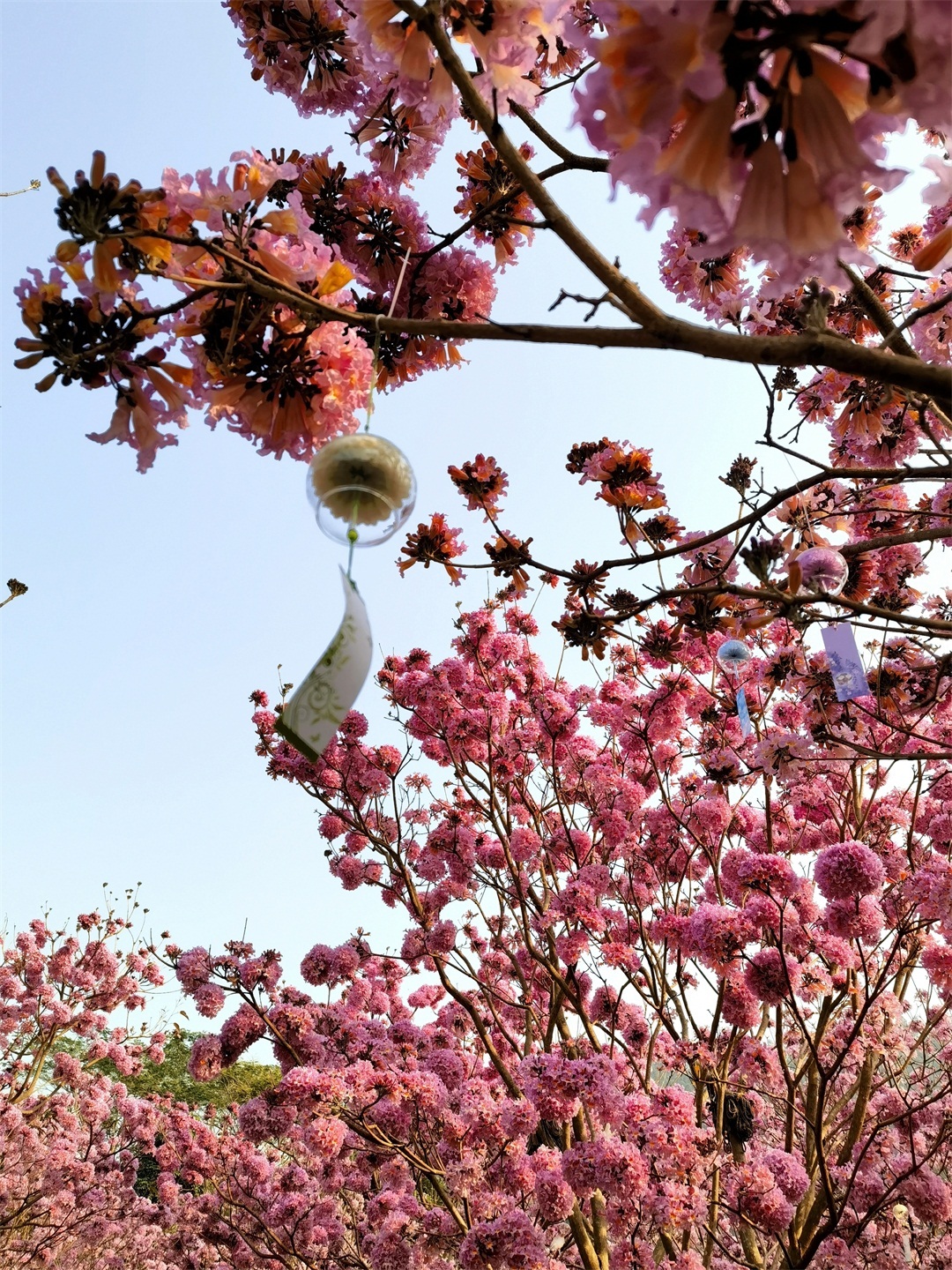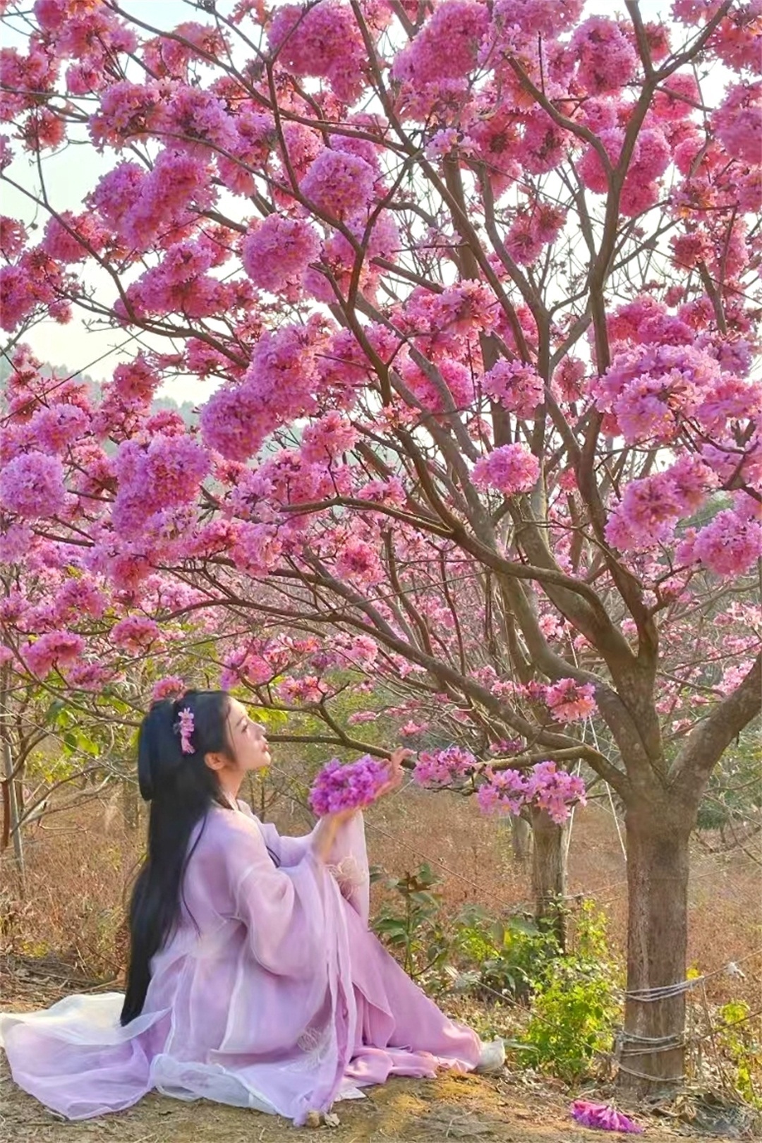 14:50 到达【绿美生态园】,占地千余亩的紫花风铃木林场,每逢冬季,这里的风铃花争相怒放,浪漫花海开满山头,形成一片姹紫嫣红的海洋