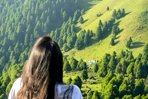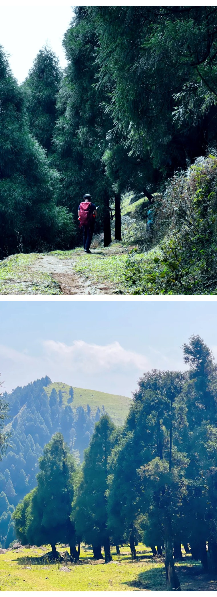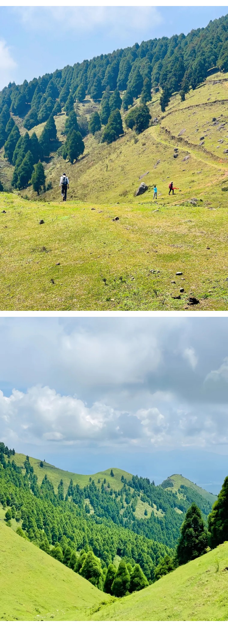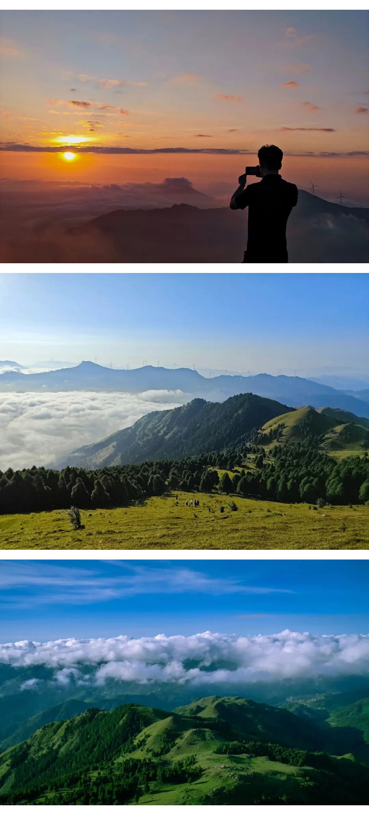 07:00 看完日出我们简单早餐后开始徒步广西的那拉提高山草原,随手一拍都很好看,山顶还有马和牛群,杉木林给六五顶披上了绿装,那一块两块零散的或是堆叠在一起的石头则是壤嵌在山体的翡翠宝玉。闭目暇想,气势磅礴的山体上,铺满茵茵绿草,似圣诞树的杉木错落有致地散布山上,各种奇型怪状的石头镶嵌其中,这大概就是传说中的欧陆风情吧
