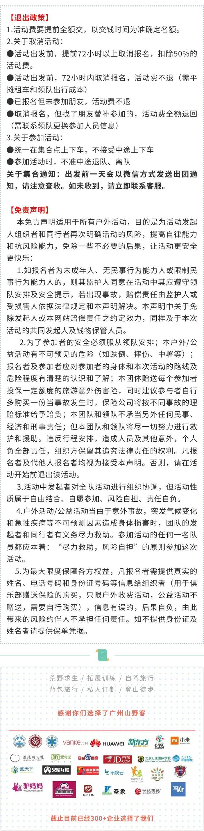 ★活动出发前,≥72小时退出,活动费用全额退回;