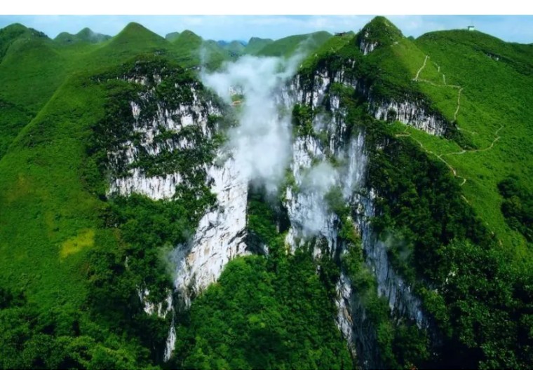 广西的西北部乐业县有一群世界闻名的世界岩溶胜地天坑群体。到处都是中国西南典型的岩溶峰丛地貌