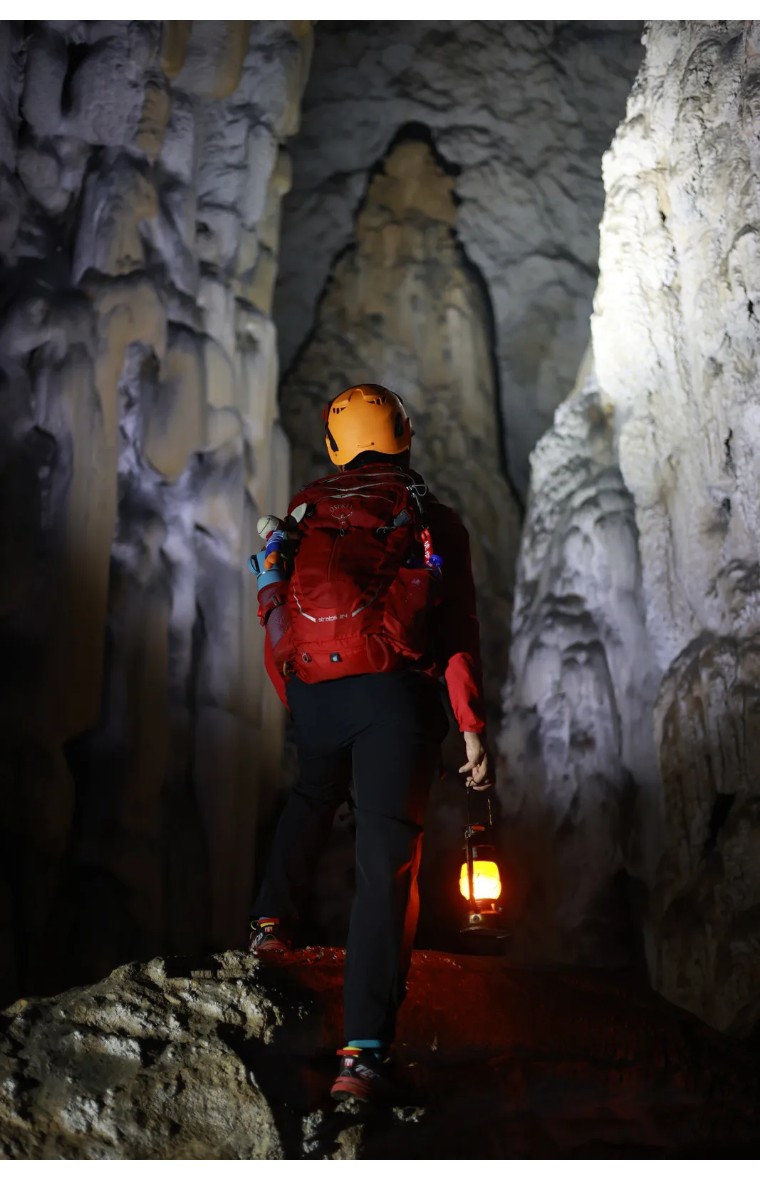 07:30徒步地心之旅。5小时的熊家俩洞连穿徒步穿越,线路很成熟,地心之旅徒步大会精华段就这里。这个季节,最合适早起登山,先进行一小段的登山,今天的午餐是路餐,只能是在洞里吃,带上温水,还有干粮,一起探索神奇的天坑溶洞世界吧