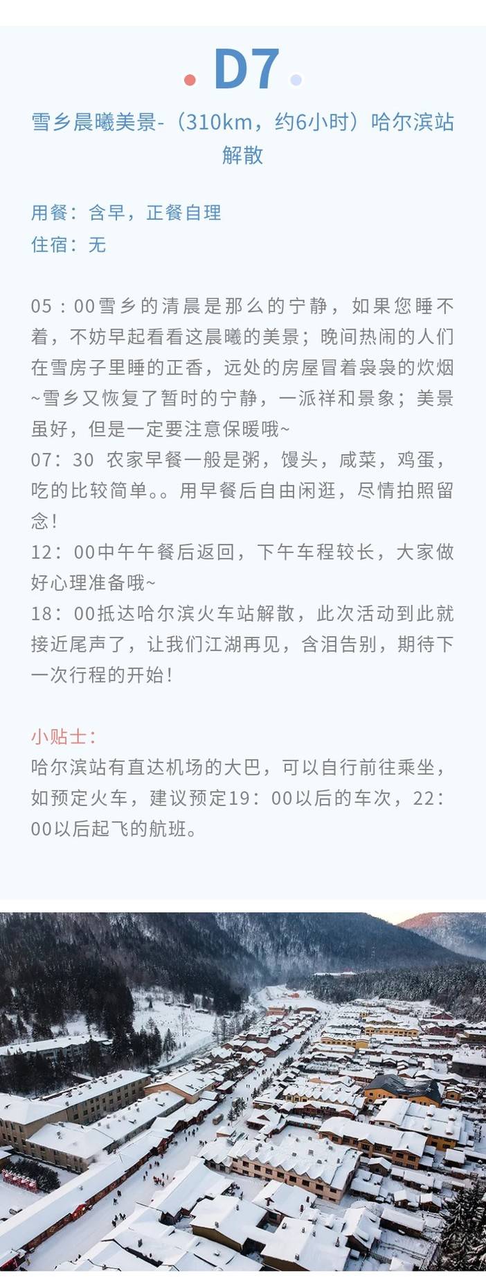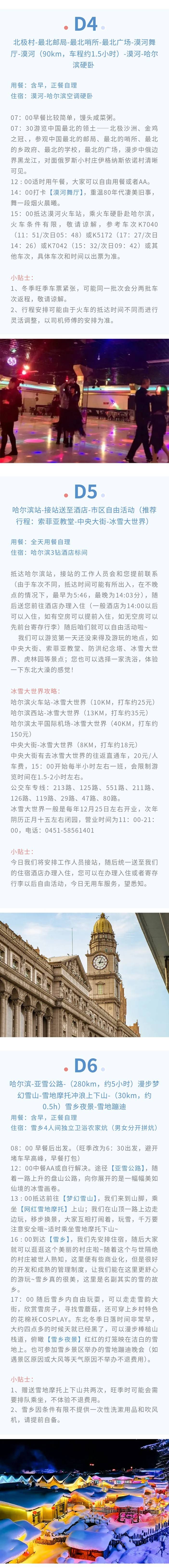 4、不含接送机,如需安排请最少提前2日和客服联系,哈尔滨接送机包车5座轿车150元/趟,夜航190元;7座商务车240元/趟,夜航290元/趟;夜航时间为21:00及以后-次日07:00及之前落地或起飞的航班,春节团期+50元/台车,包车费用以太平机场前往哈尔滨主城区定价(南岗区、道里区、道外区),如需包车前往其他区域请联系客服现询价,接送机春节价格请现询。