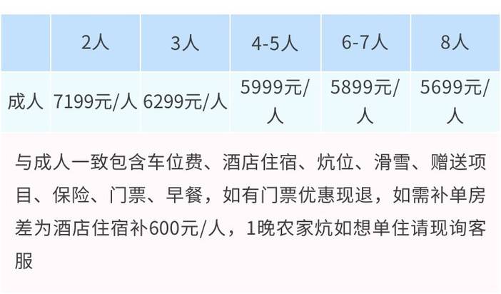 平价团期补1400元/人(包含雪乡炕位升级),如产生空床位需要补单房差2400元