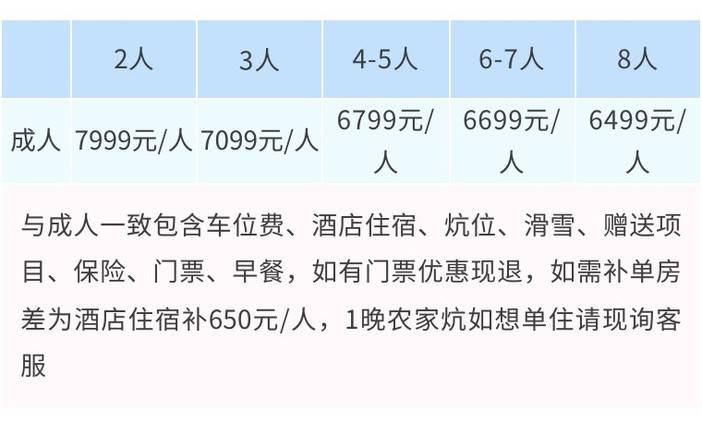 正价团期:12月7日-2月24日(不含圣诞/跨年/元旦/春节团期)
