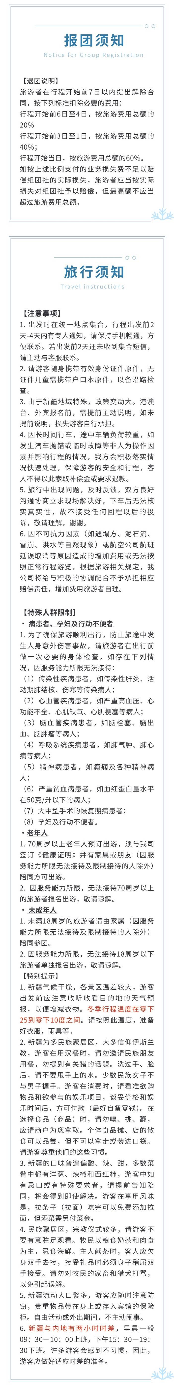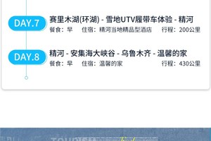 *以上行程仅供参考,由于新疆地域宽广,不确定因素较多,领队有权根据实际情况,在不减少浏览景点的情况下对行程进行调整,敬请以出团通知和最终安排为准。