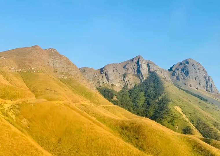 当你徒步其间,每一个转角都会带来不一样的震撼,每一步都像在龙斗峰的险峻、船底顶的辽阔、六五顶的秘境、八面山的巍峨、大南山的草甸、齐云山的云海和茶岩顶的奇石之间穿梭。