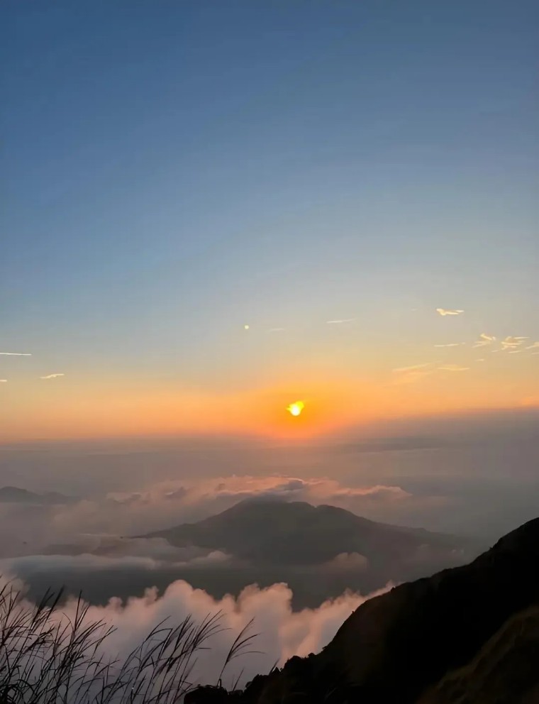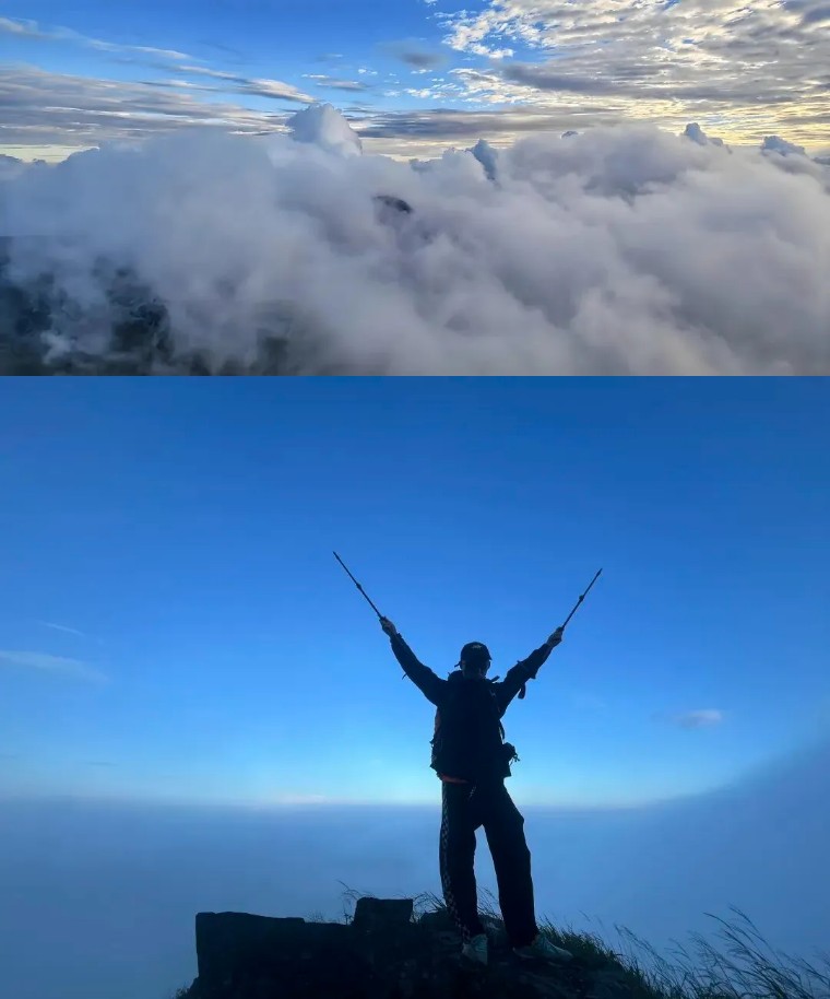 当你终于攀登至大圣山顶,眼前豁然开朗。这里常年云雾萦绕,云海翻涌,气势磅礴。站在山顶俯瞰,云海在脚下流淌,远处的山峦在云雾中若隐若现。此情此景,丝毫不逊于齐云山的壮丽云海,令人心旷神怡,所有疲惫瞬间消散。