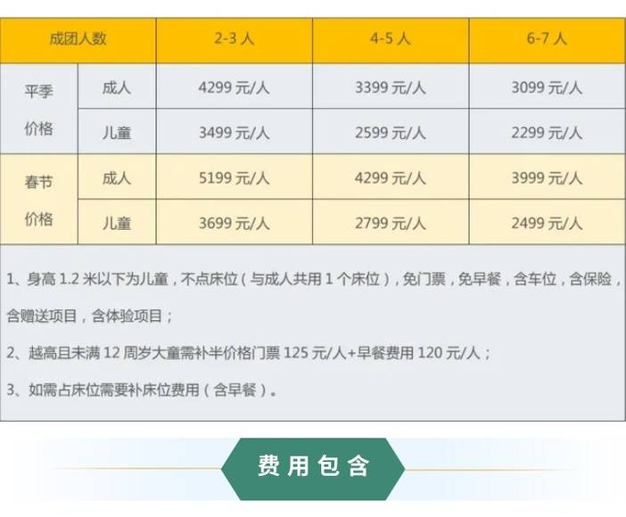 成人:3799元/人,儿童:2399元/人