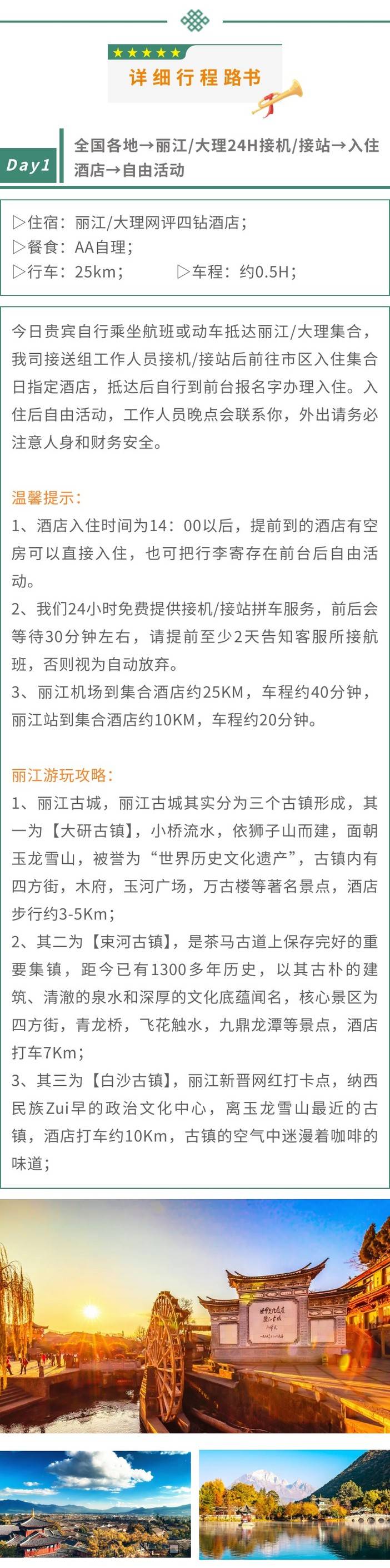 ▷交通:不包含各地到达丽江集散的往返大交通费用(如:机票和高铁火车票等,提前预定通常折扣都会很低);