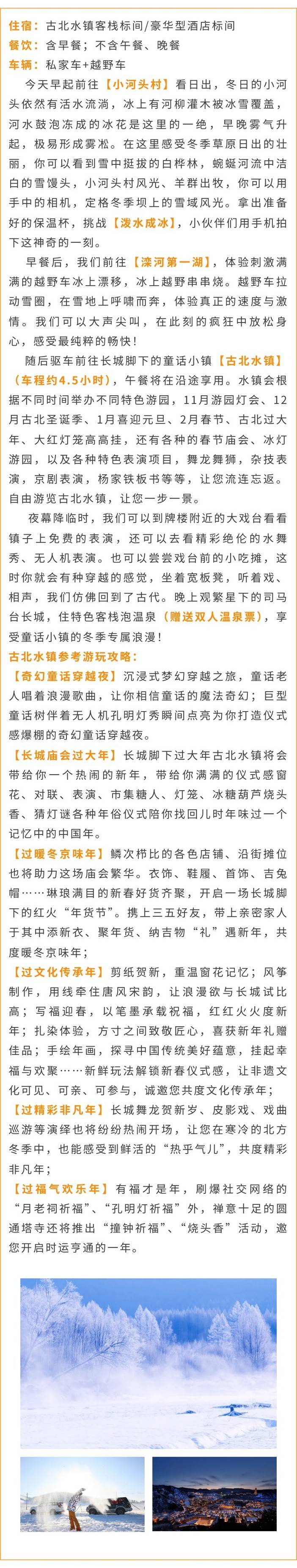 第四天:小河头日出-滦河第一湖冰上漂移-古北水镇