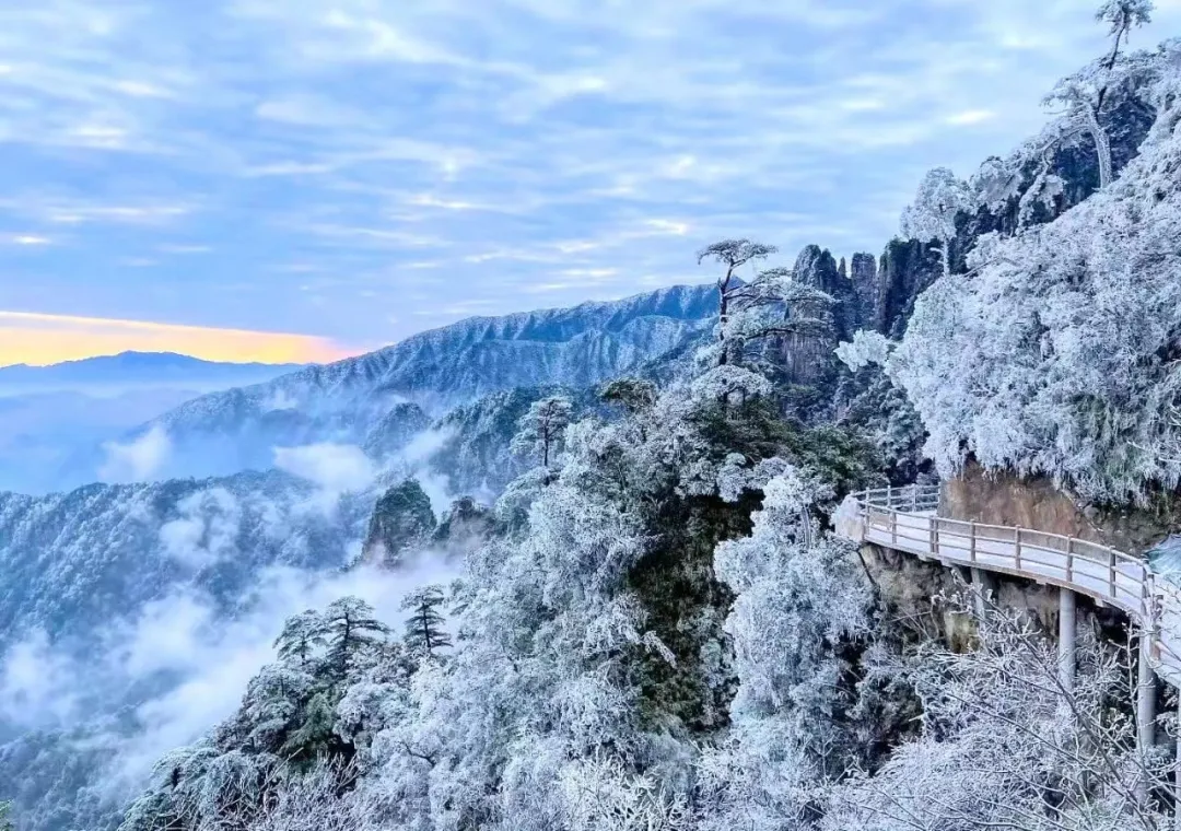 10:30 深度游览五指峰景区,漫步悬空栈道,南中国最长的悬空栈道;总长约8公里,海拔1400米至1600米,两层栈道,全程无障碍观光环线,登高山、临绝壁如履平地,尽享“非人”奇遇。