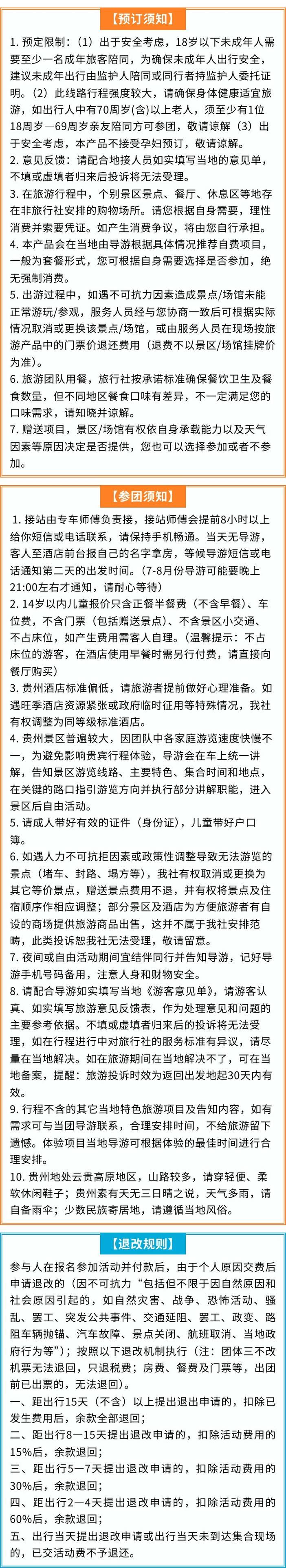 备注:梵净山是武陵山脉主峰,海拔较高。一年四季峰顶气候和山下有较大差异,如因有暴雨、降雪、凝冻、大风等不可抗力因素导致景区临时性关闭,团队将调整行程为亚木沟景区,费用无增减。敬请知悉!