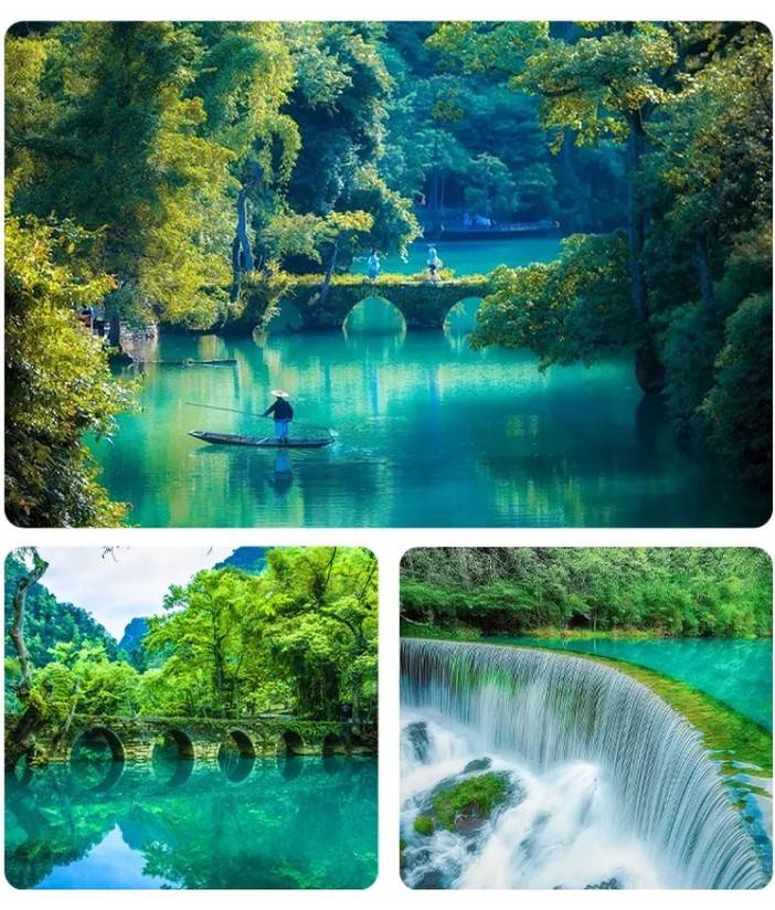 【小七孔景区】(景区观光车40元/人、保险10元/人,费用需自理;不含鸳鸯湖游船30元/人,属景区内自愿消费项目),景区因一座建造于道光15年间(1836年)的小七孔石桥而得名,被称之为“超级盆景”,集山、水、洞、林、湖、瀑布等为一体,在长不到2公里的峡谷内,起迭着68级瀑布;拉雅瀑布精巧醉人、水珠飞溅;而长不到600米的水上森林,树根盘在错石上,清澈的水流冲刷着青石。行走于其中,仿若身临琼瑶仙池。