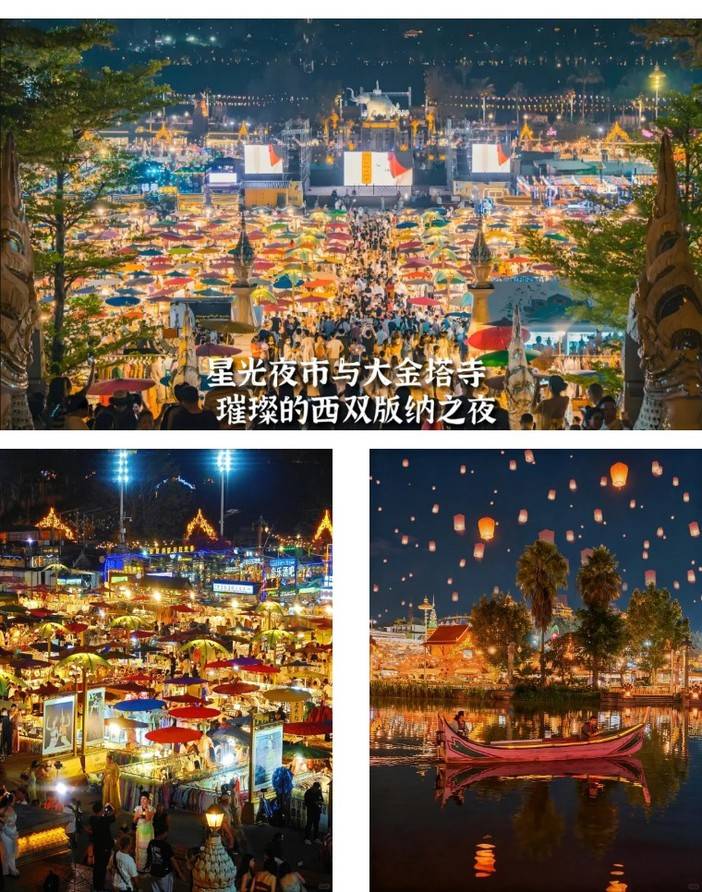 晚上自由前往【星光夜市】网红打卡地【六国水上集市】、赶摆场、东南亚美食岛、游船码头等,来此的体验都是冠绝全国,是西双版纳澜沧江畔最美的风景线。