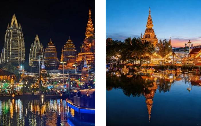 【大金塔】【星光夜市】【六国水上市场】是国内首例唯一一个具有东南亚风情的水上市场,让中国人不出国门,也能在告庄体 验到真正的六国风情。