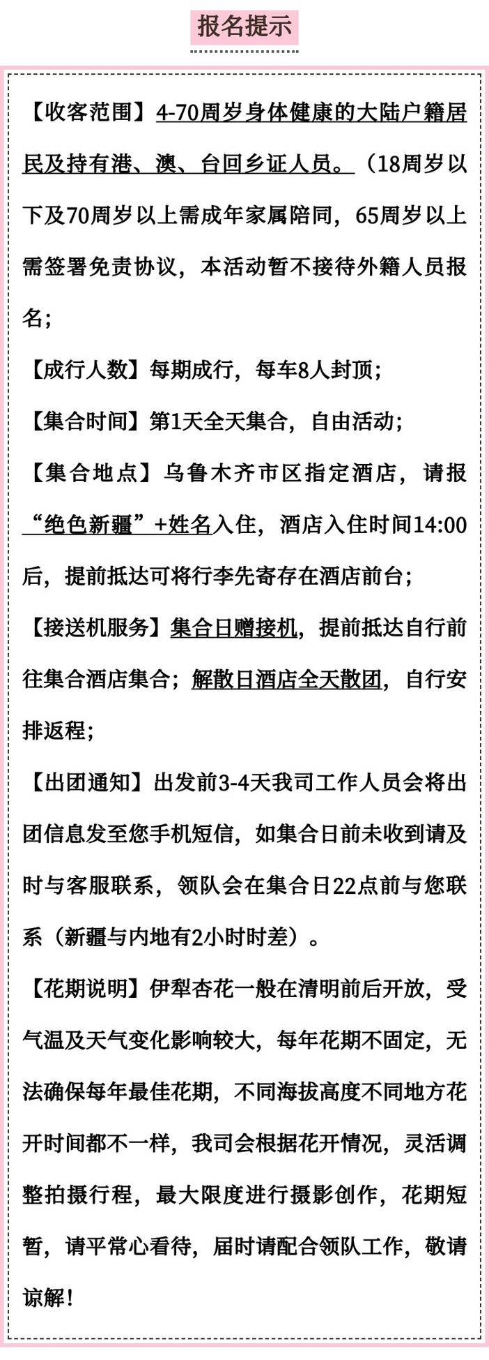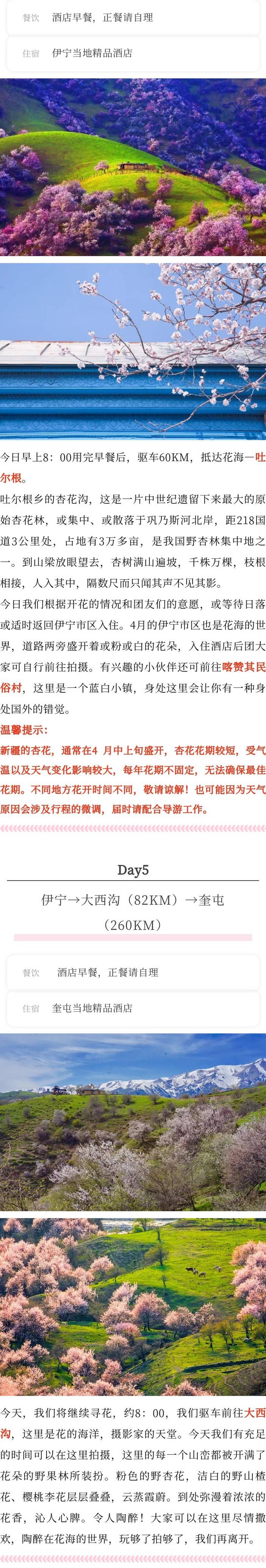 新疆,8人团【伊犁杏花6日】配航拍,吐尔根 那拉提冰百合 大西沟杏花 独山子大峡谷 赛里木湖 [复制链接]
