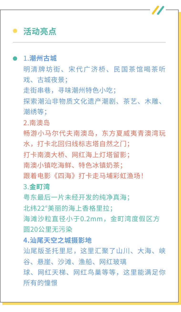 ②住宿:1晚潮州,1晚汕尾(2人一间房。单人报名默认安排同性拼房,如需单独住,需补房差)