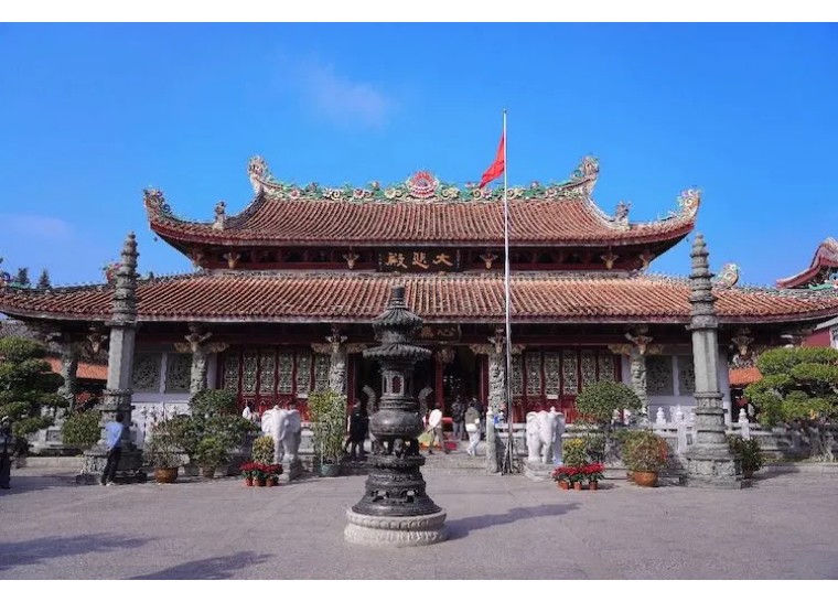 整座寺庙建筑恢弘壮观,装修繁复精致,庙宇殿堂梁柱上都雕刻着栩栩如生的龙腾,房梁上也雕刻有不同花纹。