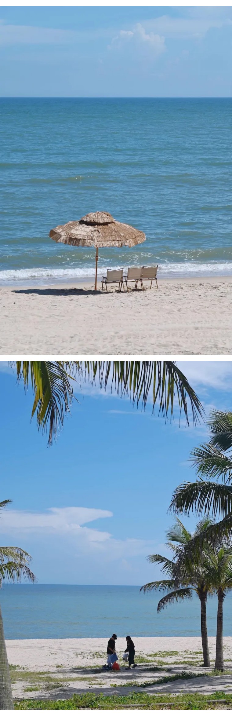 从高处俯瞰,青澳湾犹如一轮弯弯的新月。金黄柔软的沙湾绵延2400米,一直延伸到水下几百米之外。