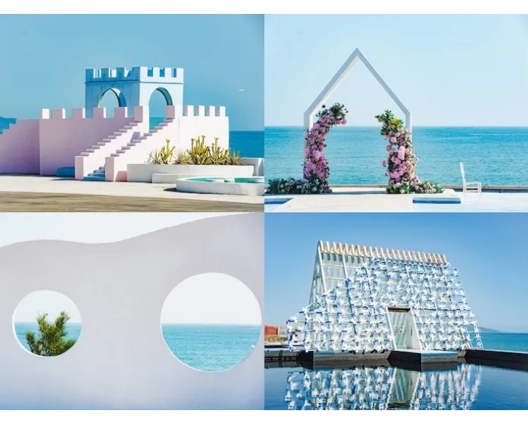 天空之城总共有两层,第一层是深色系的ins风格场景,大约有二十多处,第二层是浅色系的,最容易出片的就是第二层。这里还能拍到马宫南湖的大海,需要爬楼梯上去。玻璃教堂、无边泳池、大宅门、网红天梯、圆形透明秋千、粉色城堡等应有尽有,绝对让你拍到不想走!